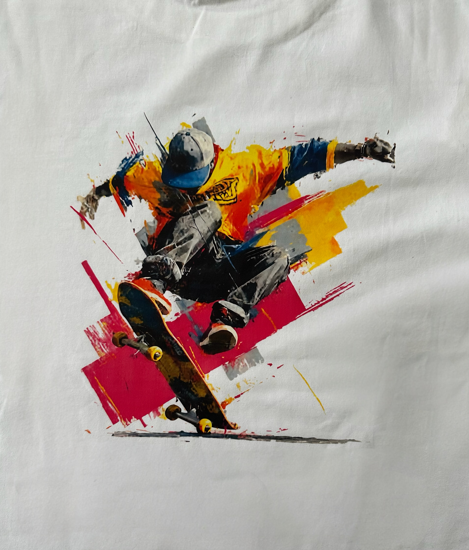 Hit the Street in Style with our Shoulder- Dropped Skate Design T-shirt , built for those who live and breathe skate Culture. Made from 100% Premium Cotton, it delivers comfort , durability and a relaxed fit- perfect for every trick , grind or chill session. The Bold skate-inspired graphic brings out your passion for freedom, creativity, and street energy.